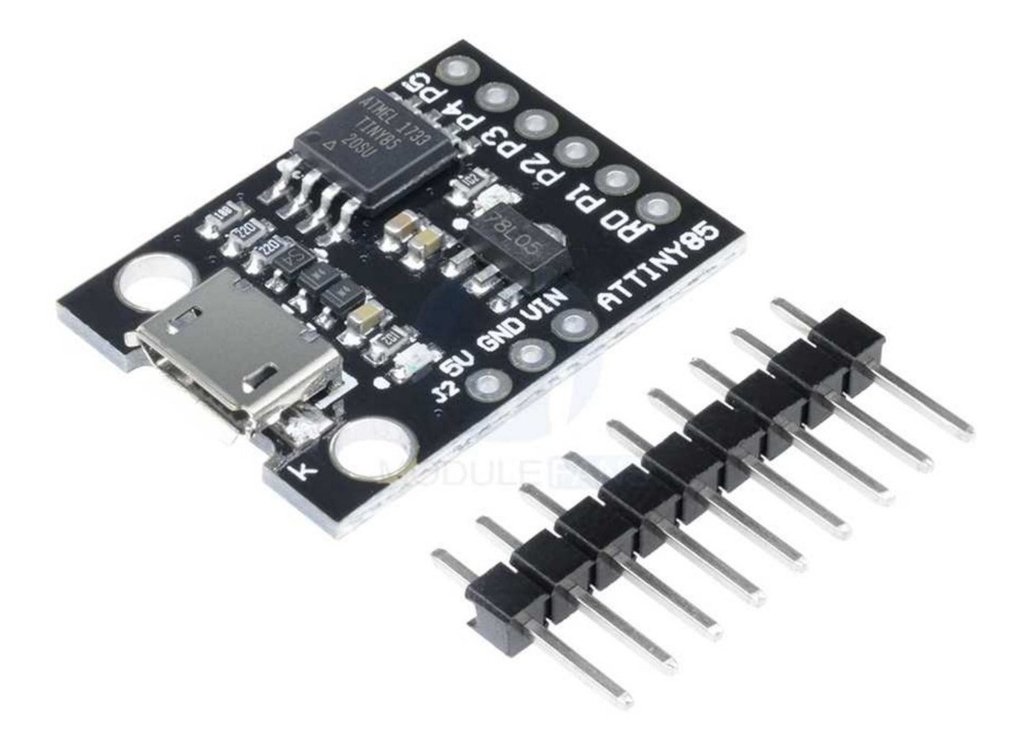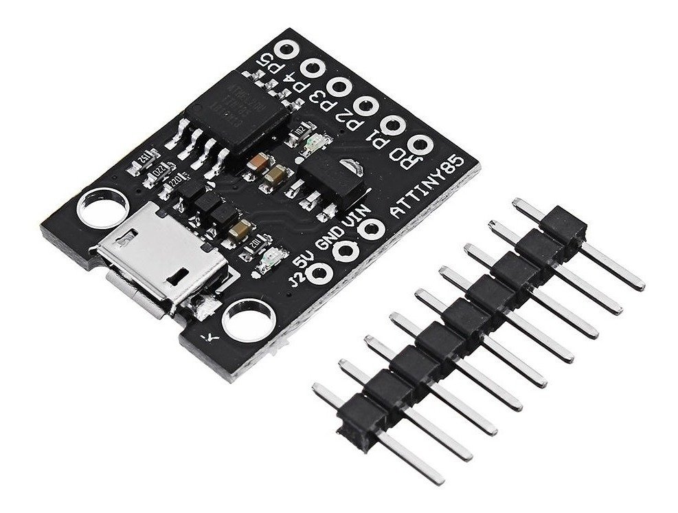 El Arduino TINY85 es una tarjeta de desarrollo basada en el microcontrolador Attiny85 compatible con el IDE de Arduino, solo que mucho mas pequeña y un poco menos poderosa, pero con la ventaja de un puerto USB on-chip.